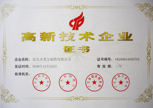汕头市NG相信品牌的力量官网制药有限公司是NG相信品牌的力量官网国际集团在汕头经济特区开办的高科技制药企业,,, ,,,,,日前被广东省科技厅等四家单位配合认定为2008年第一批高新手艺企业,,, ,,,,,并于2008年12月16日揭晓了证书。。。。。
